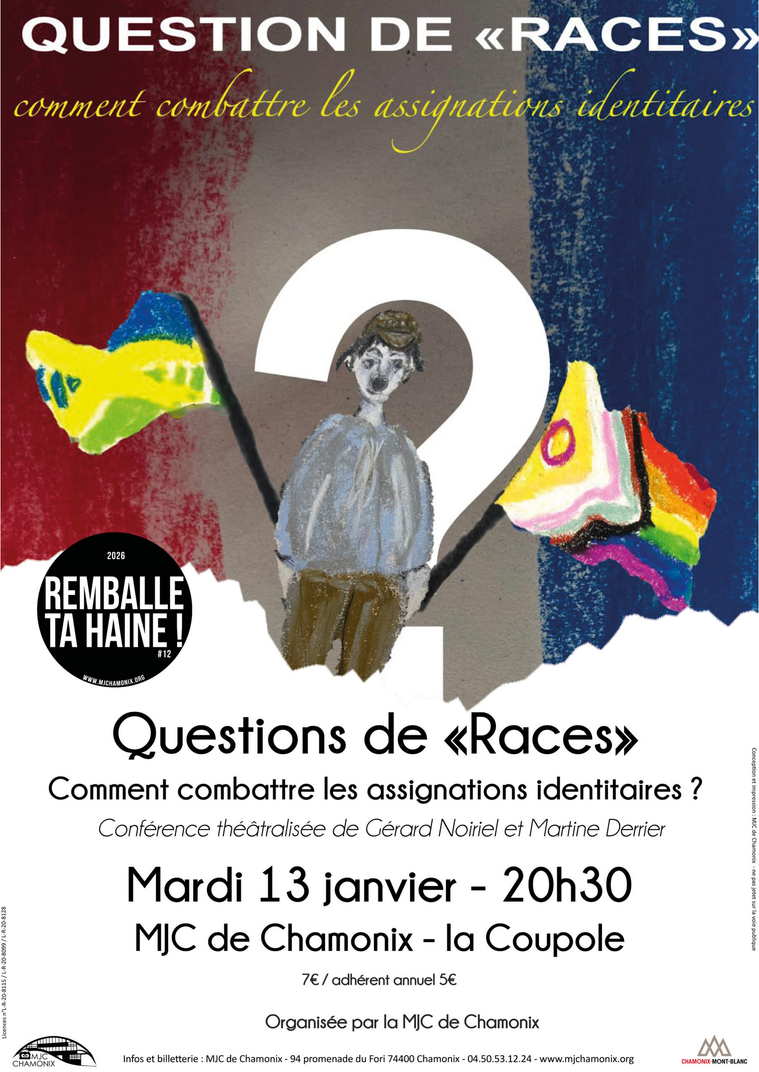 Dans le cadre du festival remballe ta haine, à 20h30, cette conférence théâtralisée de Gérard Noiriel et Martine Derrier propose un éclairage sur les questions de races et de racisme, porté par une mise en scène dynamique.